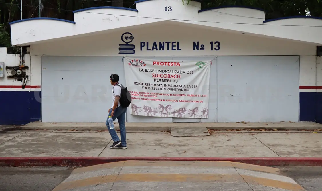 El plantón de trabajadores del Colegio de Bachilleres de Chiapas (Cobach) permanece, aunque ya hay mesas de negociación; sin embargo, aún faltan puntos por resolver, por lo que continuará la huelga de brazos caídos y la toma de dirección general.