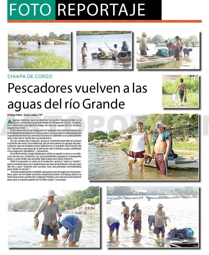 Algunas familias que se dedican al sector restaurantero y la pesca, como principal actividad en Chiapa de Corzo, Chiapas, han retomado sus labores luego de que las aguas del río Grijalva bajaran su nivel.