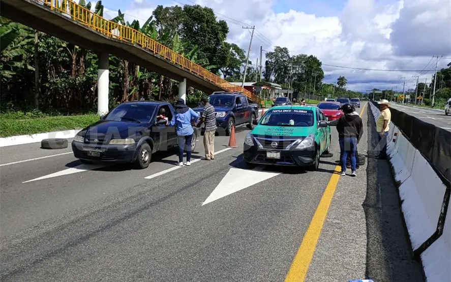 Con llantas y lazo, realizaron el bloqueo durante poco más de dos horas, a la altura del Kilómetro 10 y a la vez solicitaban a los conductores de vehículos una cooperación voluntaria “para el movimiento”.