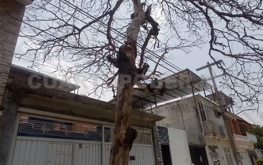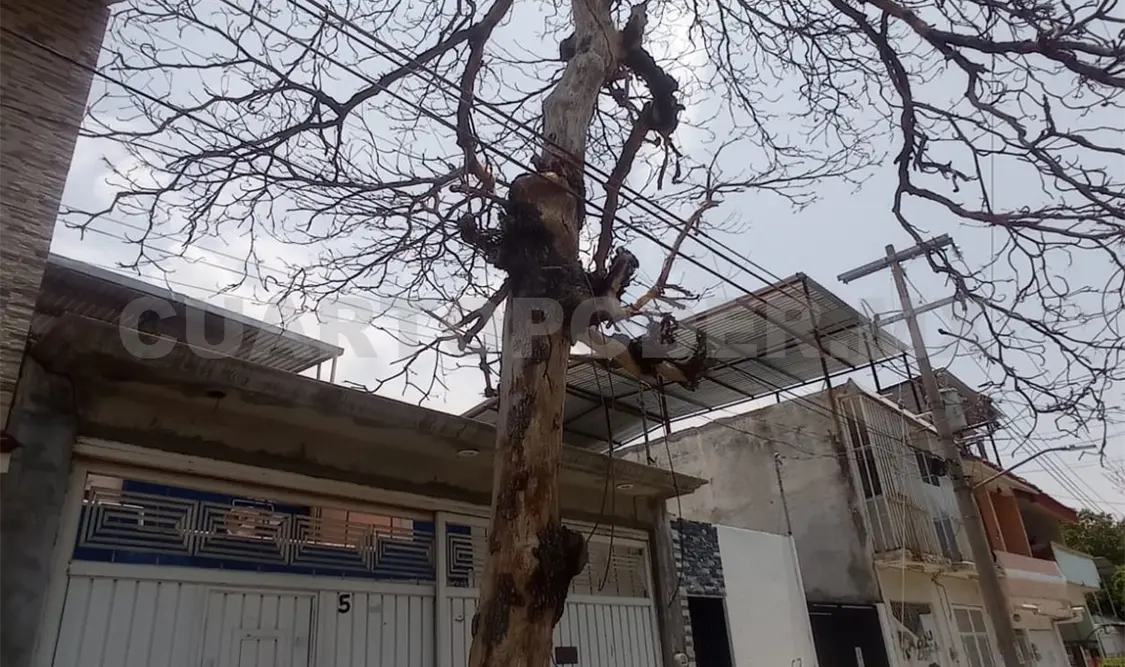 La ubicación del árbol agrava la situación. Se encuentra a escasos centímetros de los cables de la Comisión Federal de Electricidad (CFE) y sobre una zona de alto tránsito peatonal y vehicular. De colapsar, podría provocar un cortocircuito, dejar sin luz a decenas de familias e incluso dañar las viviendas aledañas.