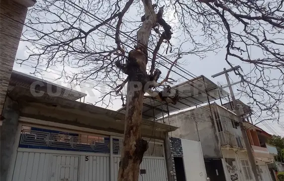 Habitantes de la colonia Infonavit Grijalva Primera Sección, hicieron un llamado urgente a las autoridades municipales para llevar a cabo el retiro de un árbol que está a punto de colapsar y representa un riesgo para los habitantes.