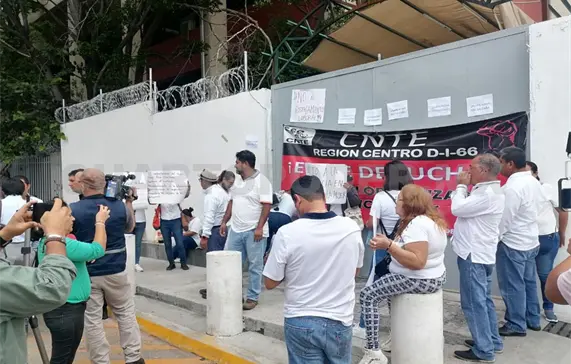 Docentes agremiados a la Sección VII de la Coordinadora Nacional de Trabajadores de la Educación (CNTE), se manifestaron ayer en la Secretaría de Educación Pública (SEP) para exigir a las autoridades que destituyan al supervisor de la Zona Escolar 055, Rubén Ruiz Saldaña, a quien acusan de acoso laboral.