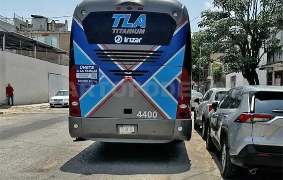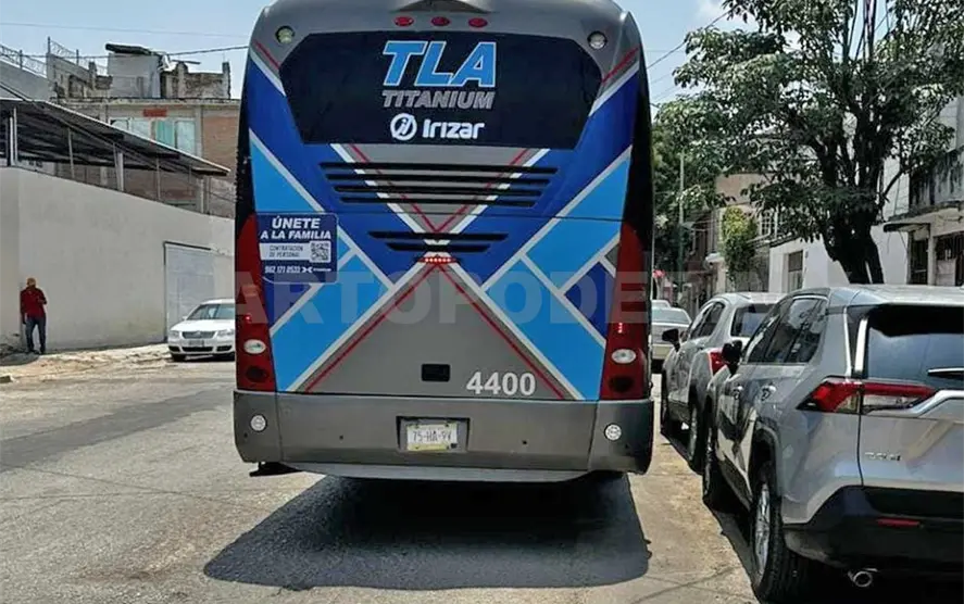 Se trata de la unidad 4400, con placas de transporte federal de la línea de Transporte TLA Titanium, 75-HA-9V, la que desde hace varios meses ha realizado esta acción que perjudica a los vecinos de la zona.