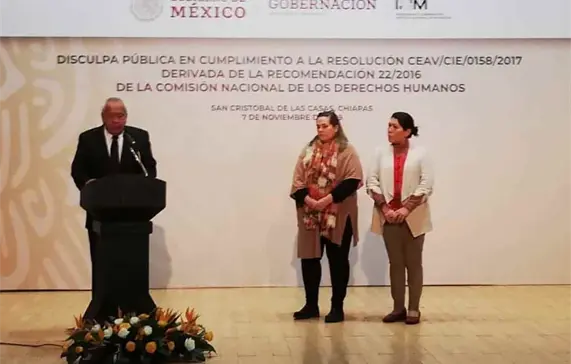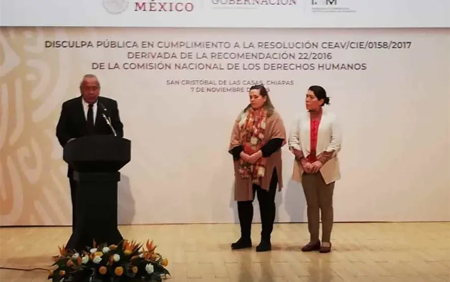 La disculpa estuvo a cargo del comisionado del INM, Francisco Garduño Yáñez, quien dijo que los agentes de la institución “transgredieron” los derechos humanos de los cuatro tseltales, cuyos nombres no fueron dados a conocer, y les causaron “daño a la imagen, el honor y a la dignidad”.