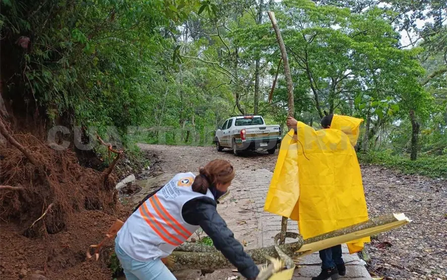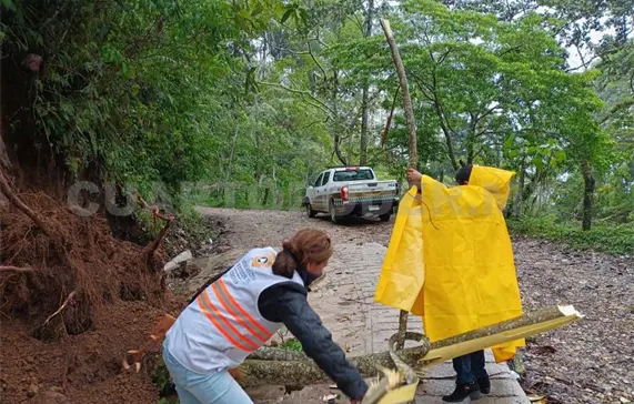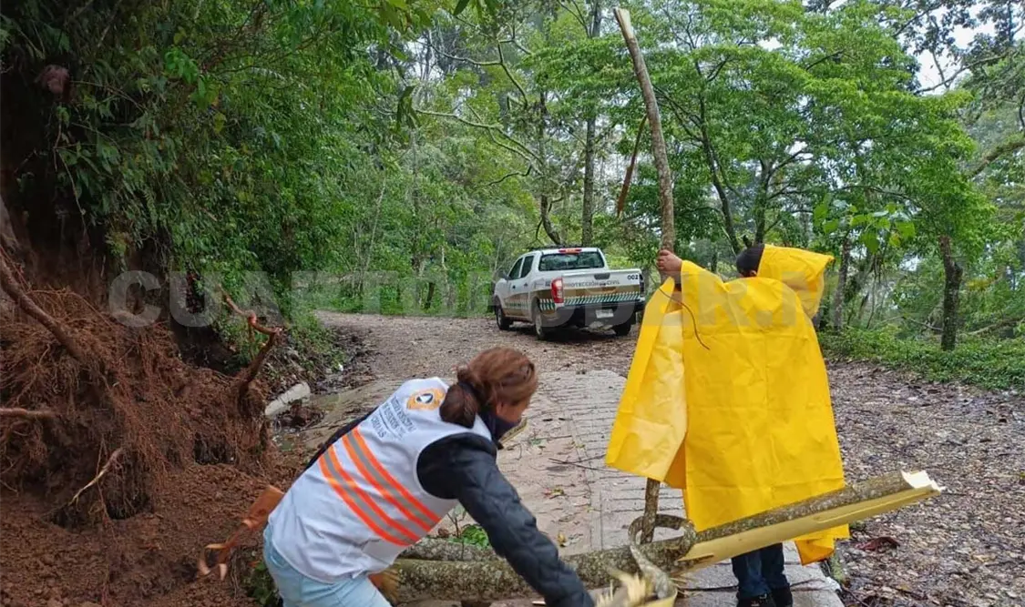 En Ixhuatán se realizó la limpieza de un tramo carretero con afectaciones menores.