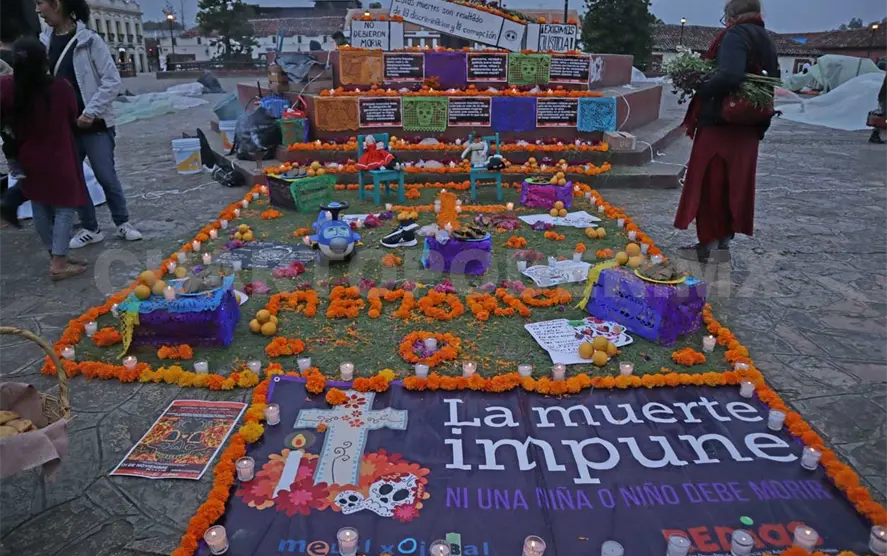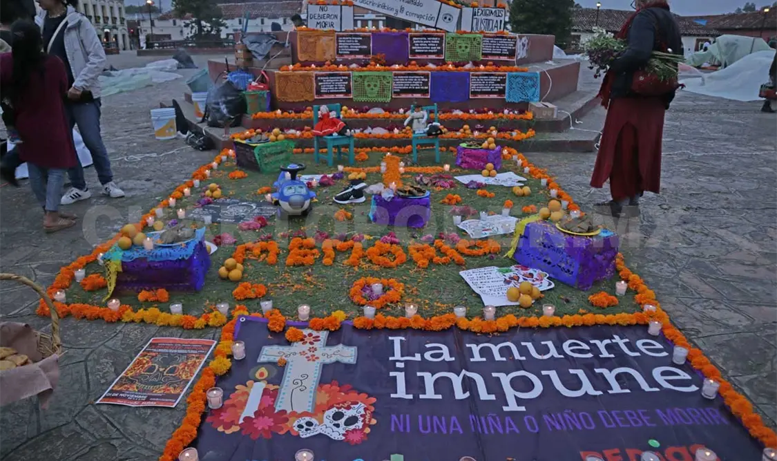 Con un altar realizado en el atrio de la Catedral de San Cristóbal de Las Casas, hicieron un llamado a la sociedad para que estas muertes e impunidad no sean indiferentes.