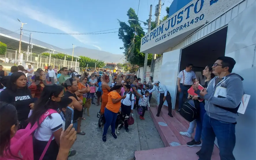 Por segundo día consecutivo, padres de familia de la escuela primaria Justo Sierra Méndez de la colonia Santa Cruz de Tuxtla Gutiérrez realizaron una protesta para pedir la resolución de un conflicto que se ha derivado de los señalamientos en contra de dos profesores acusados de malos tratos hacia el alumnado.