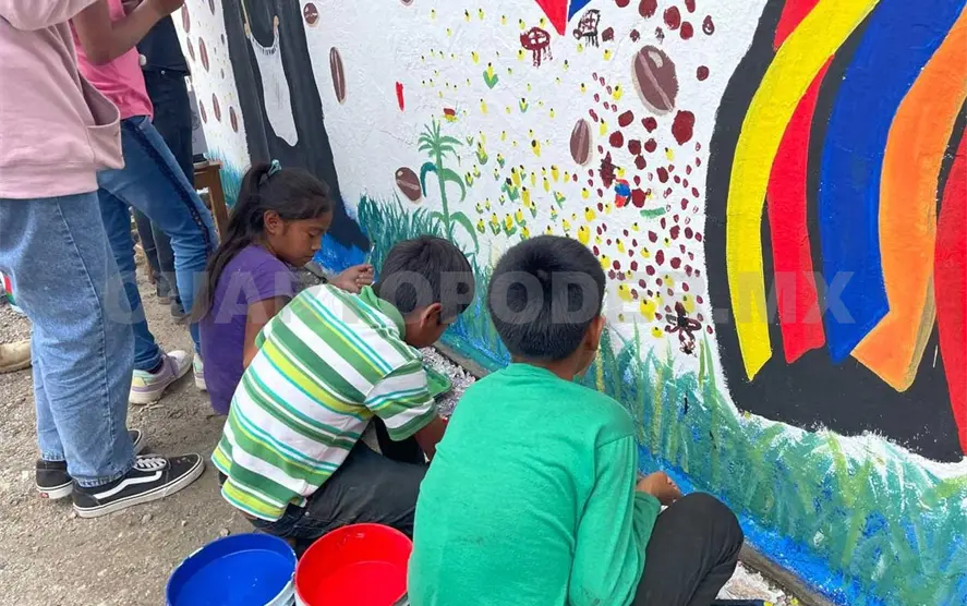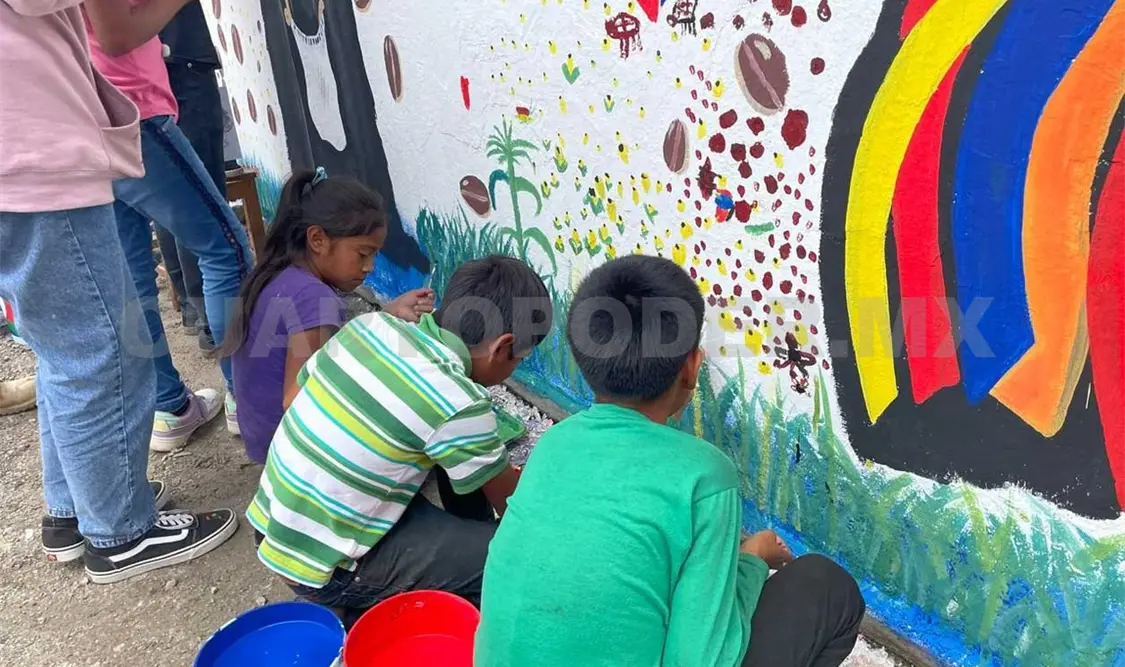 “Reuniendo corazones” es el nombre del mural comunitario hecho por jóvenes, niñas y niños de Chenalhó y otras comunidades de los Altos, que fue borrado para colocar propaganda política.