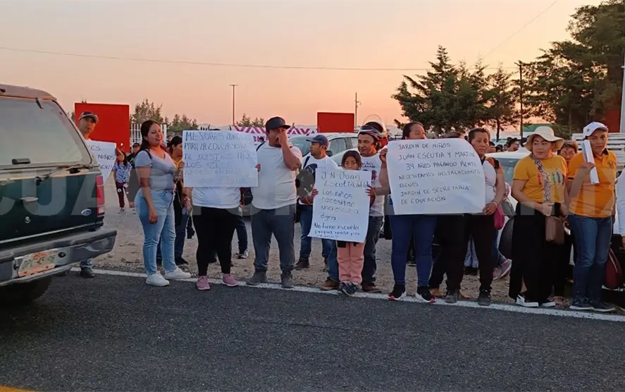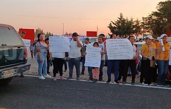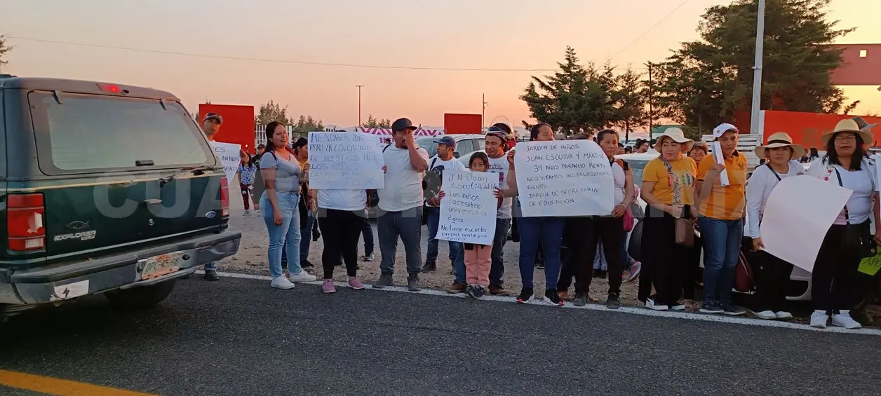 Con pancartas, los padres de familia se apostaron a un costado de la carretera al Polideportivo y de las instalaciones de la Universidad Rosario Castellanos recién inaugurada la noche del viernes.