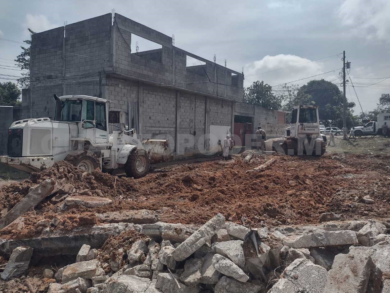 La mañana del martes una cuadrilla de trabajadores petroleros con maquinaria pesada se presentó en la colonia irregular El Porvenir, donde comenzaron a derribar tres viviendas construidas sobre los ductos activos que transportan hidrocarburo, gas y agua salada de la batería Sitio Grande hacia el complejo procesador de gas Cactus.