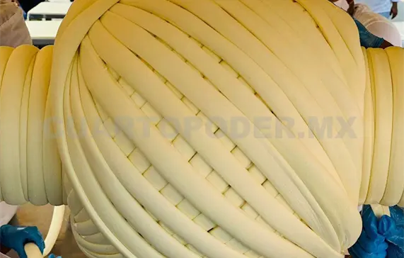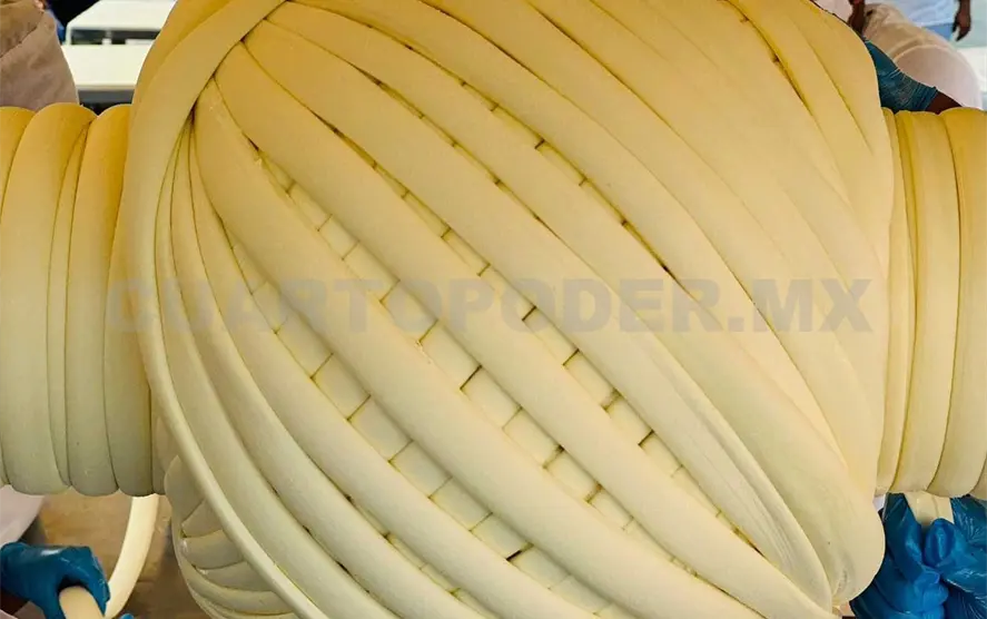 Son seis mil litros de leche los que se usarán para lograr los 600 kilos de quesillo; las queserías también aportan mesas, utensilios e insumo, además de una mano de obra de más de 80 trabajadores que van a estirar y enrollar el producto.