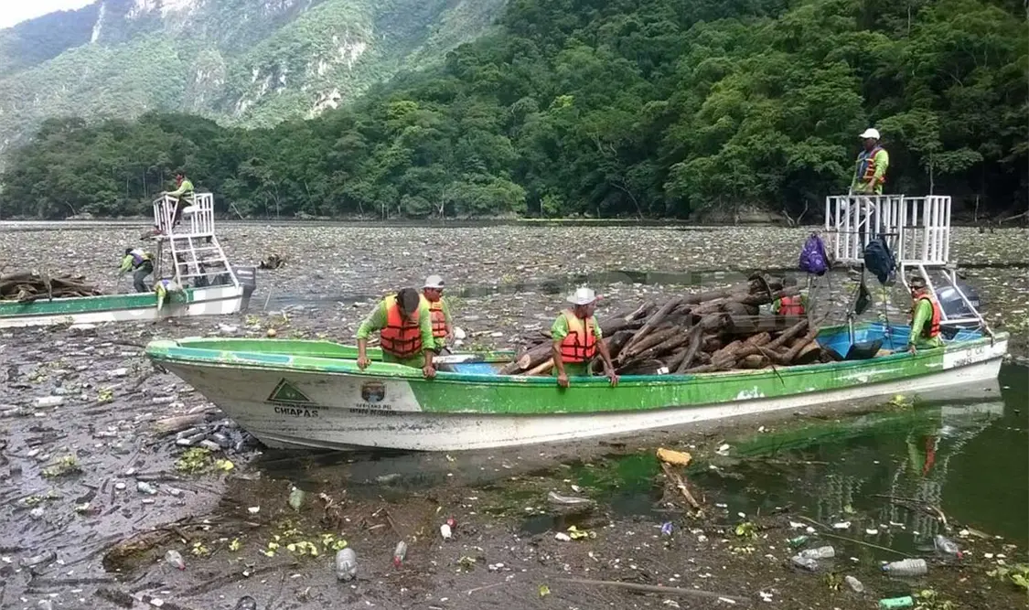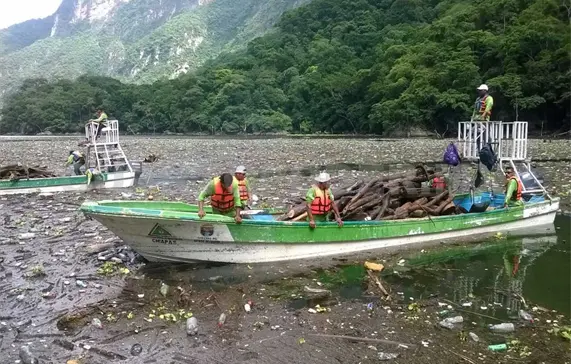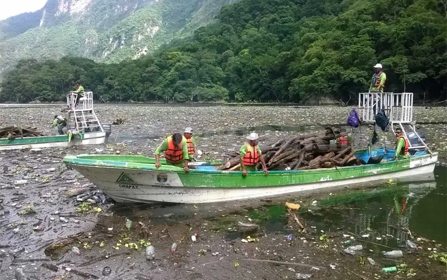 Durante el 2017 se extrajeron dos mil 537.16 toneladas de residuos sólidos del área navegable del Grijalva al interior del Parque Nacional.