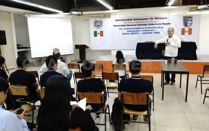 En el marco de la Tercera Jornada Académica Internacional de Arquitectura y Urbanismo de la Facultad de Arquitectura de la Unach y la Universidad Nacional Santiago Antúnez de Mayo, de Perú, el docente presentó la ponencia “Los métodos del urbanismo.”