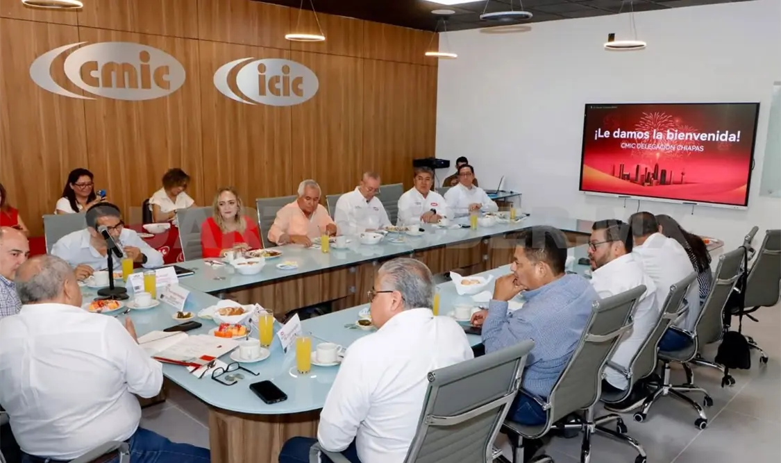 Con el objetivo de detonar el crecimiento económico de Chiapas a través del desarrollo de infraestructura, las y los afiliados de la Cámara Mexicana de la Industria de la Construcción (CMIC), delegación Chiapas, sostuvieron una reunión de trabajo con el subsecretario de Desarrollo Industrial y Atracción de Inversiones de la Secretaría de Economía y del Trabajo (SEyT), Pedro René Bodegas Neávez.