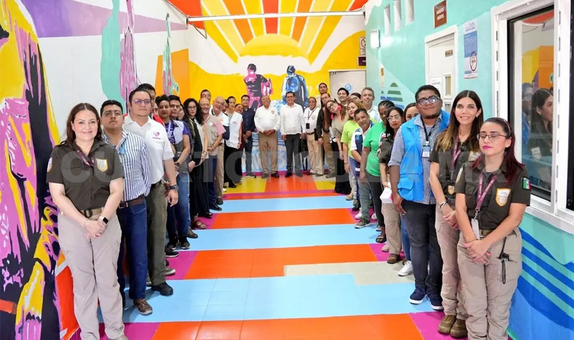 Los murales envolventes denominados Caminos y Migraciones, proyecto impulsado por MigrARTE, se presentaron de forma paralela a los resultados de la intervención arquitectónica realizada por el Instituto, que en conjunto generan espacios más humanos y armónicos al interior de la estación migratoria.