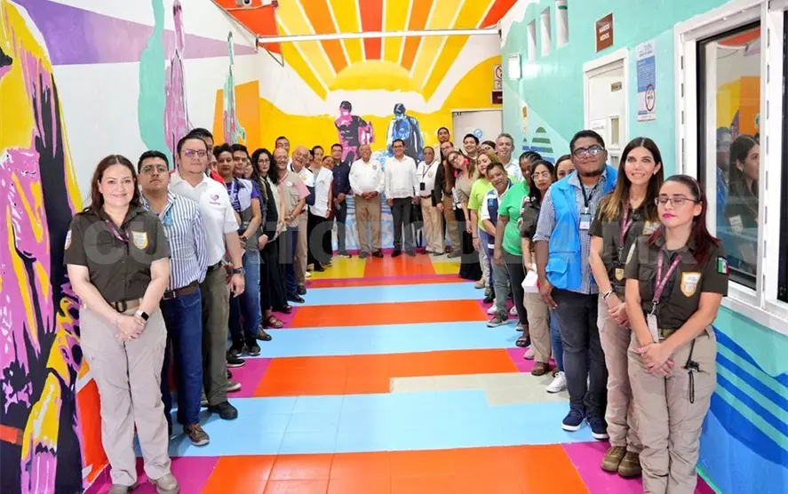 Agradeció la apertura que brindó el INM para transformar los muros de la estación y cambiar los entornos que en su origen fueron pensados como espacios carcelarios, para convertirlos en lugares coloridos, alegres, amables y humanos, que influyan positivamente en el estado de ánimo de las personas migrantes.