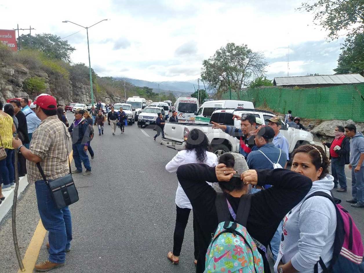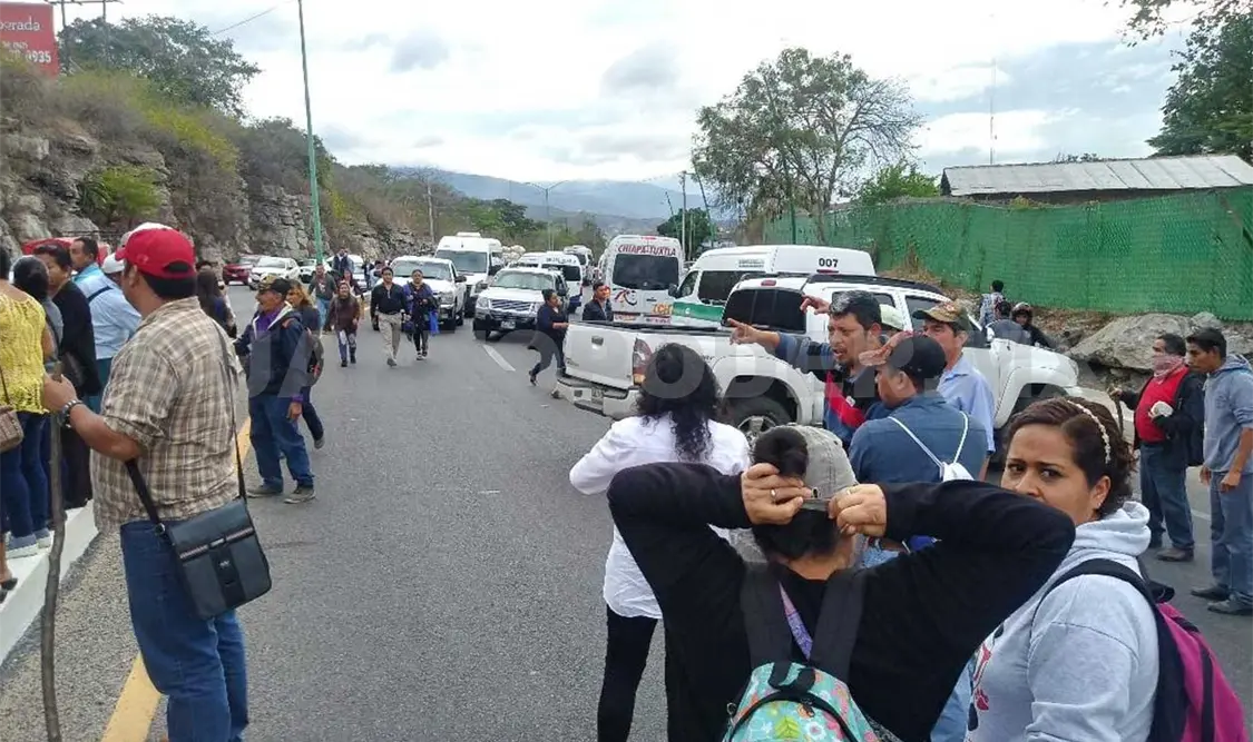 Los manifestantes de los municipios de Simojovel, Huitiupán, Amatán, El Bosque y Jitotol arribaron al epicentro del bloqueo al filo de las 8:30 de la mañana y de inmediato cortaron la circulación vehicular, que se reabrió hasta las 8:20 de la noche.