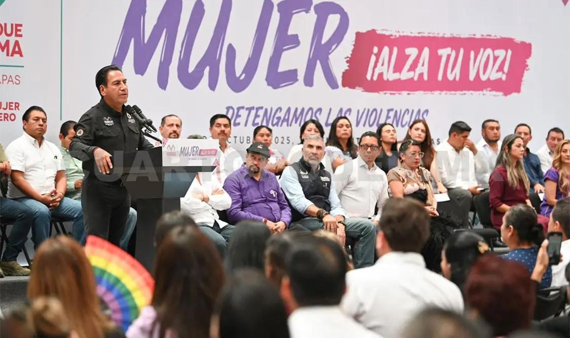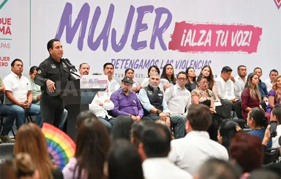 “Cerremos filas y hagamos de Chiapas el lugar donde se respeta a las mujeres. Tenemos que ser ejemplo y lo vamos a lograr. Luchemos juntos, pueblo y gobierno, para que esta causa se traduzca en paz y armonía”, expresó el mandatario, al destacar que la presidenta Claudia Sheinbaum ha instruido atender las causas de la violencia, y que la ejercida contra las mujeres debe abordarse de inmediato, brindándoles certeza y aplicando la ley.