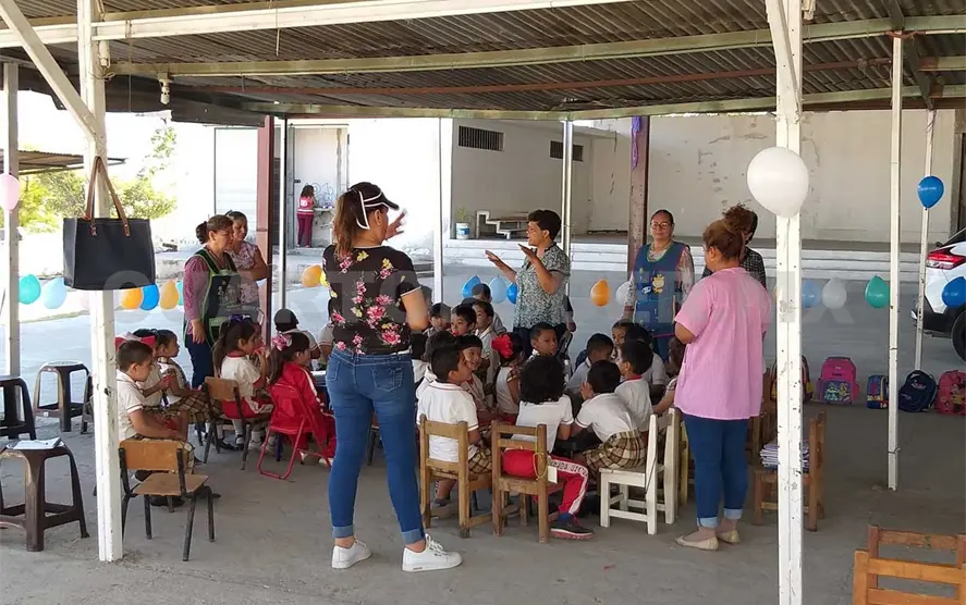 Cansadas de la omisión de la autoridad fue que decidieron convocar a los padres de familia para que se impartieran las clases afuera de la iglesia, lo que fue apoyado por la mayoría, aunque las condiciones no son las óptimas dado que el techo es de lámina y con las altas temperaturas el calor es muy fuerte.