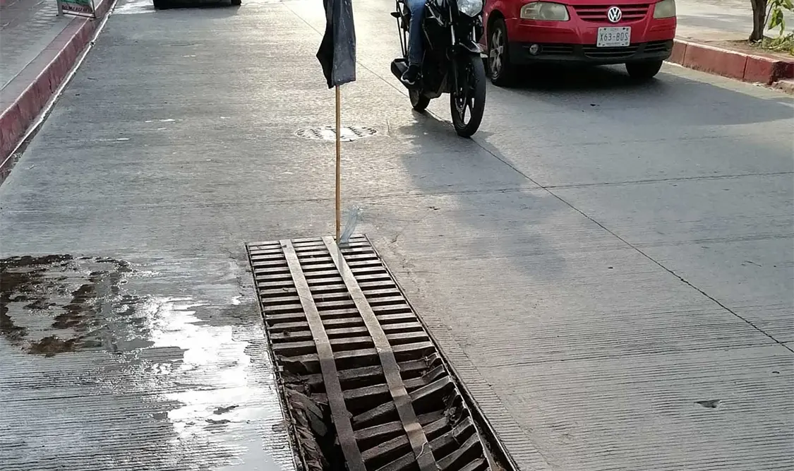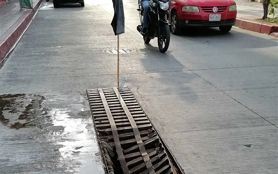 Tras las últimas lluvias presentadas en la capital, los baches se hacen cada vez más profundos y las alcantarillas se llenan de basura o bien se colapsan, como en el caso de la ubicada en la primera Sur y segunda Oriente de Tuxtla Gutiérrez.