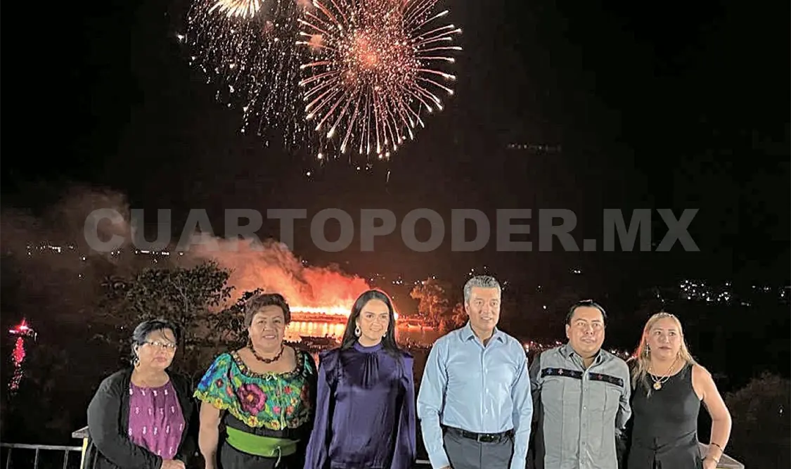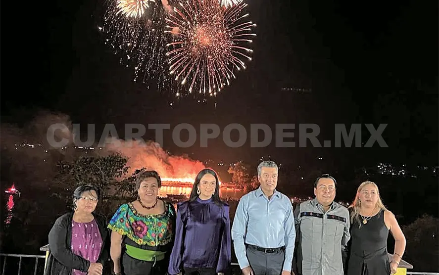 Desde el malecón de Chiapa de Corzo, Escandón Cadenas apreció el espectáculo de luces que engalanó el cielo por más de 40 minutos, al tiempo de destacar la importancia de continuar con la conservación y el fortalecimiento de este tipo de representaciones que conmemoran fechas históricas y, sobre todo, recuerdan la fortaleza, el orgullo, la integridad y gallardía de los pueblos originarios para defender a México.