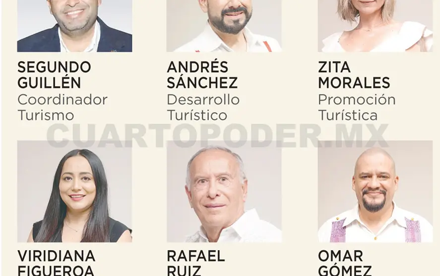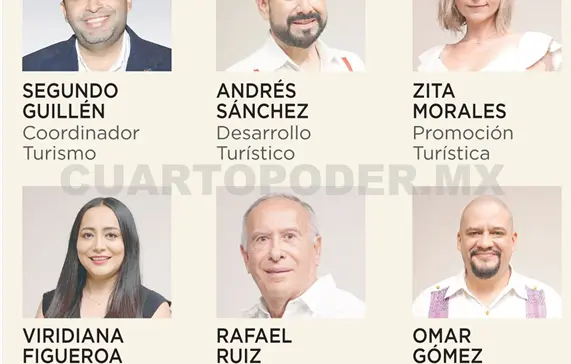 Asimismo, informó que Segundo Guillén será el coordinador ejecutivo de Turismo; Andrés Sánchez de León, subsecretario de Desarrollo Turístico; y Zita Morales Cervantes, subsecretaria de Promoción Turística; Rafael Ruiz Morales, subsecretario de Caminos e Infraestructura Hidráulica.