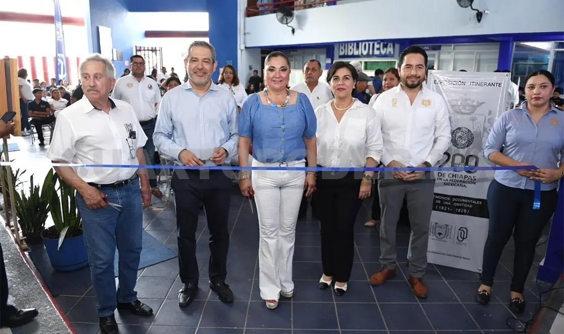 El rector Carlos Faustino Natarén Nandayapa, acompañado de la presidenta municipal interina de Tapachula, Gladiola Soto Soto, inauguró la exposición itinerante “200 años de Chiapas en la Federación Mexicana. Testimonios Documentales de una Identidad (1821-1826)”.