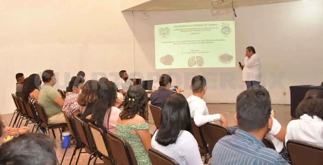Docentes y alumnos de la Licenciatura de Ingeniero en Sistemas Costeros de la Universidad Autónoma de Chiapas (Unach), presentaron los avances sobre la evaluación ambiental de la Laguna de Pozuelos, durante el Seminario de Investigación “Evaluación ambiental y pesquera de la Laguna de Pozuelos, Tapachula, Chiapas”.
