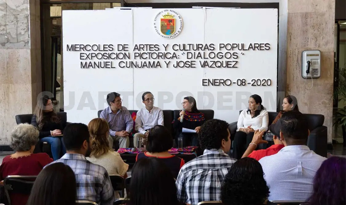 El Congreso del Estado de Chiapas, realizó la Exposición Pictórica “Diálogos” de los artistas Manuel Cunjamá y José Vázquez Estrada, dentro del programa de “Miércoles de Artes y Culturas Populares”, a través de la Comisión de Culturas Populares, que preside la diputada María Obdulia Megchún López.