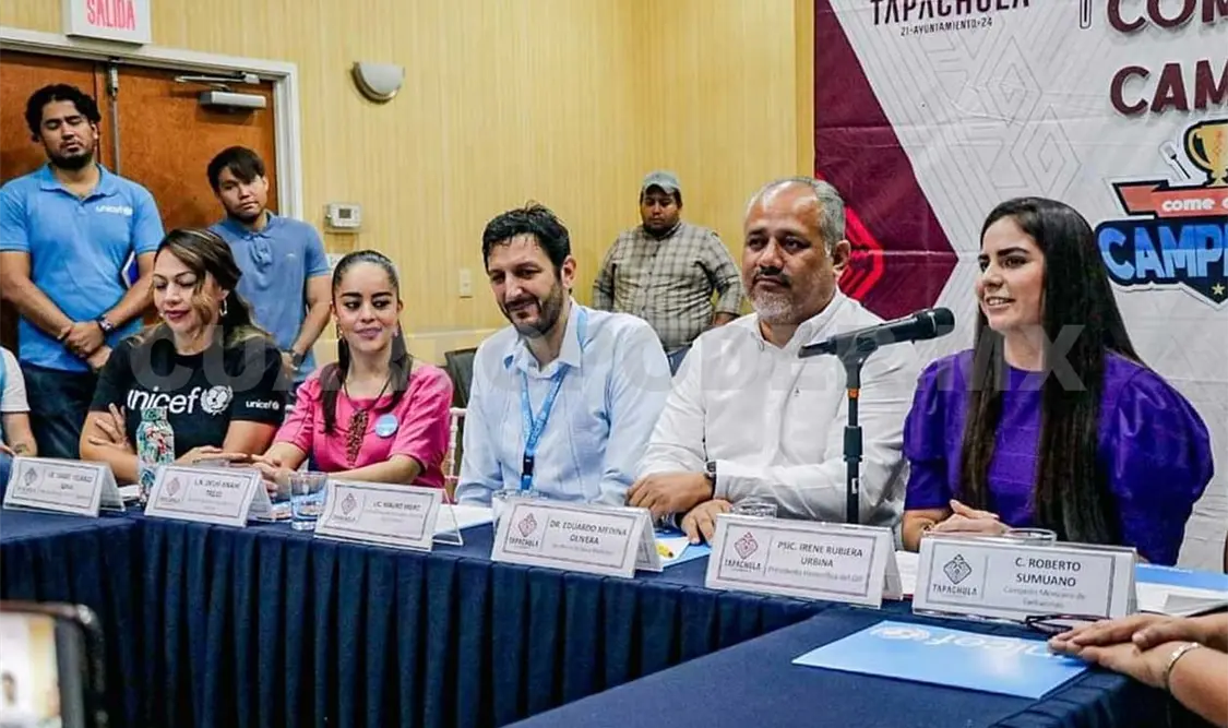 El Ayuntamiento de Tapachula y la Unicef presentaron la campaña “Come como Campeón”, con la que se pretende fomentar hábitos alimenticios saludables y la práctica del deporte en niñas, niños y adolescentes.