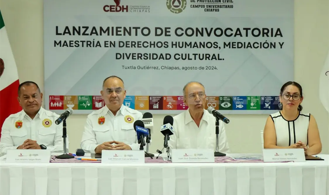 A fin de incrementar la formación profesional dentro del sector educativo y para atender las necesidades que enfrentan sectores vulnerables en Chiapas, se llevó a cabo la presentación de la Maestría en Derechos Humanos, Mediación y Diversidad Cultural, la cual permitirá formar perfiles que puedan atender, basado en el marco normativo, las diferentes situaciones que se vayan presentando en los diversos contextos, ya sea privado o público.
