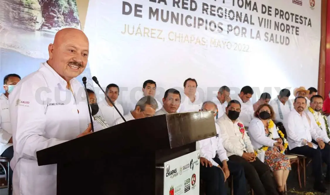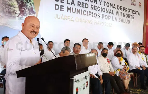 “Con la instalación de la Red Regional Norte VIII de Municipios por la Salud se consolidan esfuerzos a favor de la salud de las y los chiapanecos que por muchos años no tenían unidades dignas de salud y personal médico”, afirmó el secretario de Salud del estado, Dr. Pepe Cruz, al presidir la toma de protesta de los once presidentes municipales que conforman esta demarcación distrital.