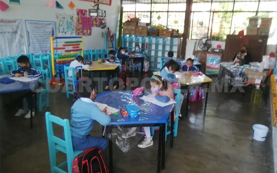 Comentó que la escuela tiene en total 670 niños inscritos en 18 grupos y se tomó el consenso con los padres de familia que por voluntad propia quisieran mandar a sus hijos a clases presenciales.