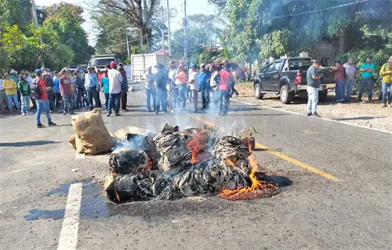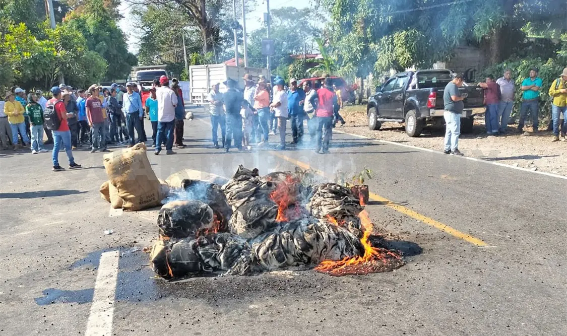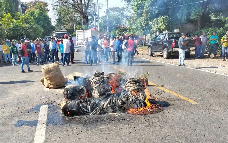 Ante ello, el jueves iniciaron un bloqueo en la carretera Tapachula-Nueva Alemania a la altura de la planta potabilizadora, en donde atravesaron vehículos, piedras y palos; además quemaron algunos costales de café como una medida de protesta.