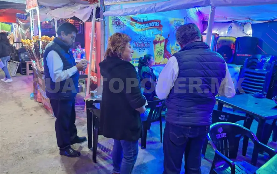 Personal de Protección Civil continúa con la verificación permanente de las áreas de alimentos, juegos mecánicos y la zona de eventos masivos, como parte de las acciones para garantizar la seguridad de las y los visitantes en la Feria de la Primavera y de La Paz en San Cristóbal de Las Casas.