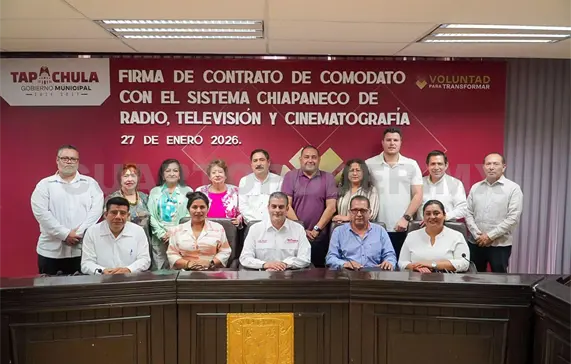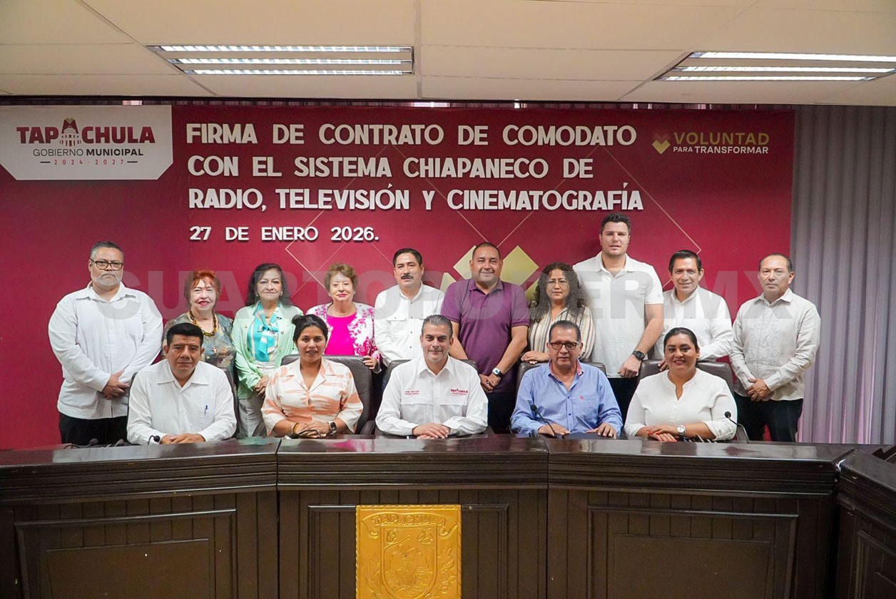 En el marco de la firma del contrato de comodato con el Sistema Chiapaneco de Radio, Televisión y Cinematografía, el presidente municipal Yamil Melgar Bravo destacó que su gobierno trabaja de manera coordinada y permanente con el Gobierno del Estado de Chiapas, fortaleciendo acciones que impulsen la comunicación pública y el acercamiento institucional con la ciudadanía.