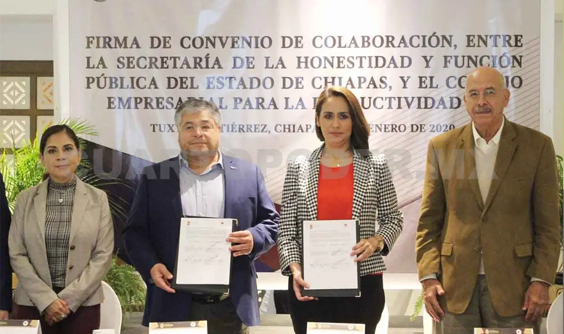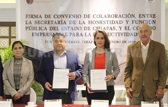 La Secretaría de la Honestidad y Función Pública (SHyFP) signó el convenio de colaboración con el Consejo Empresarial para la Productividad A.C., a fin de desarrollar acciones conjuntas e implementar mejores prácticas para el adecuado control y la eficiente gestión de la administración pública.