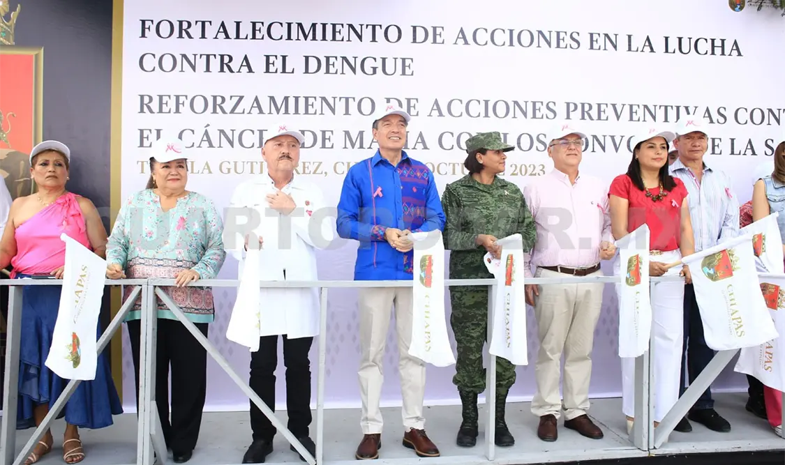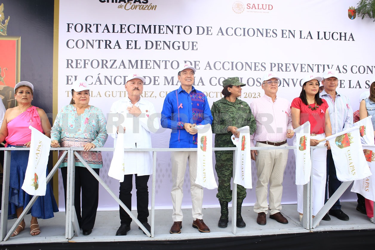 “La clave para combatir y erradicar diversos padecimientos es la prevención. Por ello, me da gusto constatar que la salud en Chiapas se está atendiendo, al enfocar la atención en dos asuntos importantes: el combate al cáncer de mama, y al dengue, zika y chikungunya. Es fundamental que participemos activamente en este tipo de acciones, revisarse permanentemente y acercarse a la unidad médica más cercana para atender cualquier indicio, aunque no tengamos ningún malestar”, apuntó.