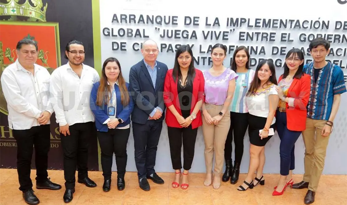En este contexto, inició la implementación del programa global con la colaboración entre el Gobierno del Estado encabezado por el gobernador Rutilio Escandón Cadenas, y el representante de la ONUDC, Kristian Hölge, mediante la firma del acuerdo entre ambas instancias.