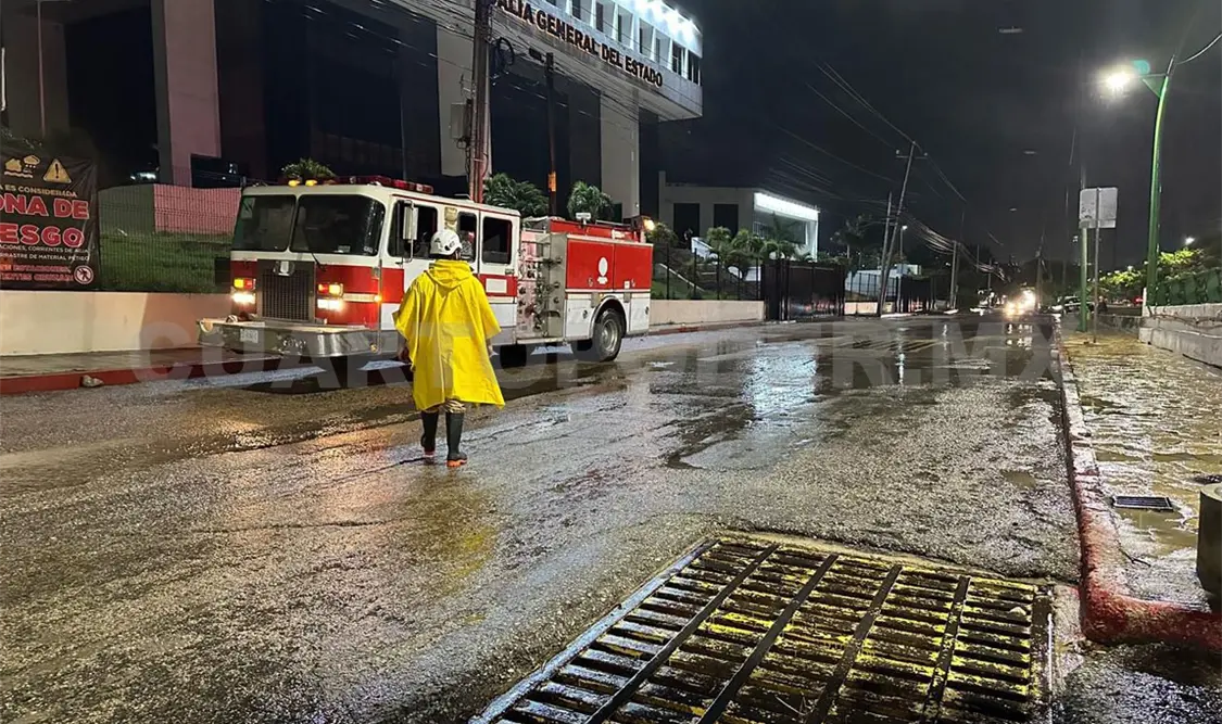 El agua se elevó por algunos centímetros de la calle Ricardo Flores Magón del fraccionamiento Jardines del Grijalva, además del desbordamiento del canal pluvial en el fraccionamiento 24 de Junio.