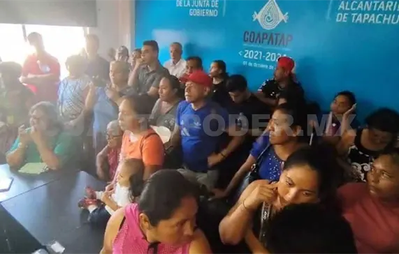 Inconformes con el incremento de los recibos y la falta de agua, representantes de unas 60 colonias, tomaron por espacio de tres horas las oficinas del Comité de Agua Potable y Alcantarillado de Tapachula (Coapatap).