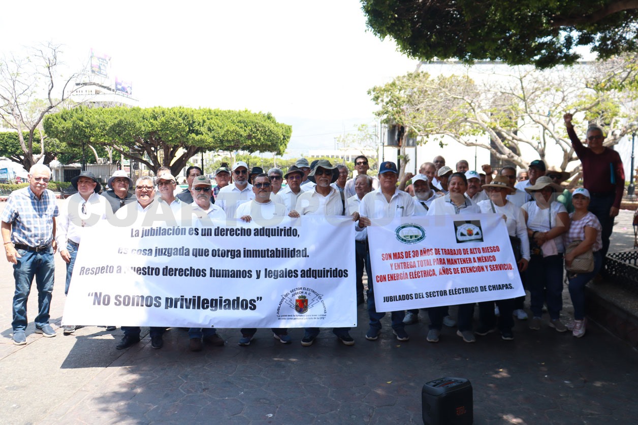 Jubilados de la Comisión Federal de Electricidad (CFE) se congregaron este martes frente al Congreso del Estado de Chiapas para manifestar su rechazo a la reforma constitucional que pretende modificar el Artículo 127.