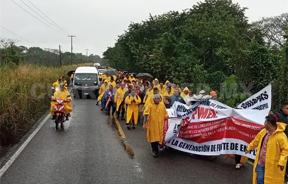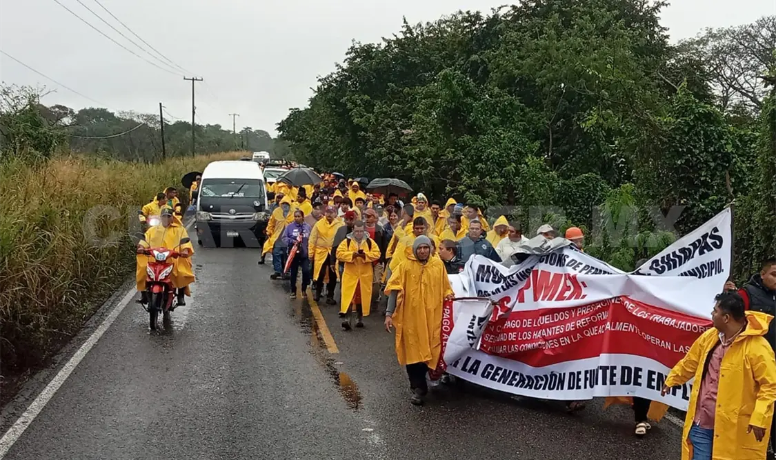 Posteriormente, bajo la copiosa lluvia de la mañana marcharon por más de ocho kilómetros hasta llegar a la entrada principal del complejo procesador de gas “Cactus”, donde se unieron con otro grupo de obreros que también se manifestaron desde el lugar conocido como el “Negaluma”, pasando por la colonia El Carmen, hasta llegar a dicho complejo petroquímico.
