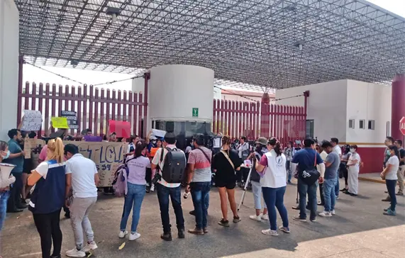Un grupo de trabajadores contratados por la empresa Soluciones Integrales y Profesionales en Mantenimiento Residencial e Industrial (Siprom) que presta sus servicios en las instalaciones de la Estación Migratoria Siglo XXI de Tapachula, realizaron una protesta señalando que no les han cubierto sus salarios en las tres últimas quincenas.