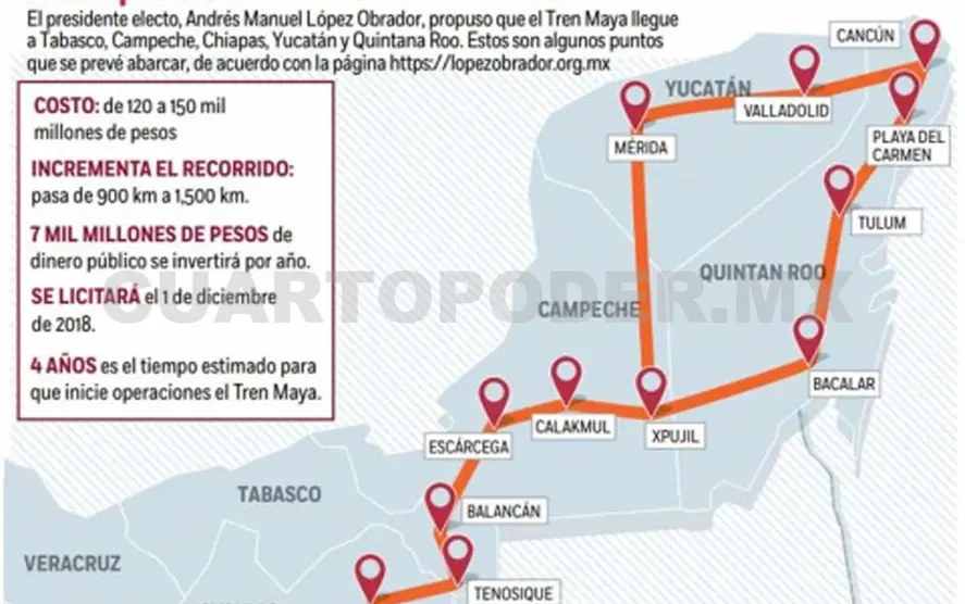 Recordó que aunque de momento solamente es un proyecto, el “Tren Turístico Maya” circularía por Chiapas, Quintana Roo, Campeche y Yucatán.