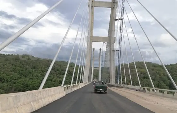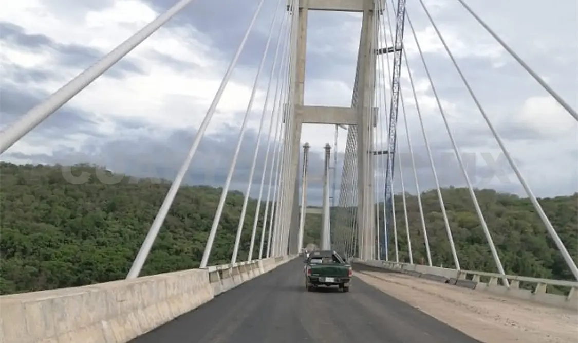 El puente atirantado tuvo una fecha de inicio en octubre de 2014, pero no fue concluido, por lo que en esta administración se retomó el proyecto; el reinicio de trabajos se dio en noviembre de 2022. Es una demanda histórica por parte de los pobladores de la región desde los años 70’s, cuando el embalse cortó los caminos.