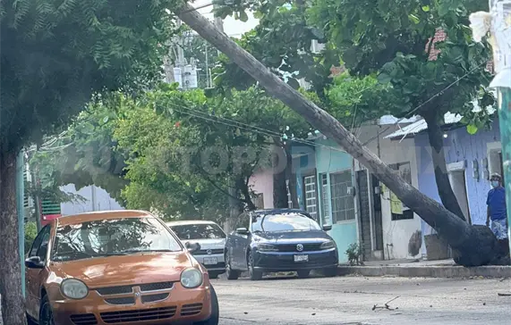 Tras las intensas rachas de viento registradas en la capital chiapaneca y su zona metropolitana, se informó sobre la caída de un árbol en una colonia de la ciudad, así como riesgos en el cableado eléctrico.