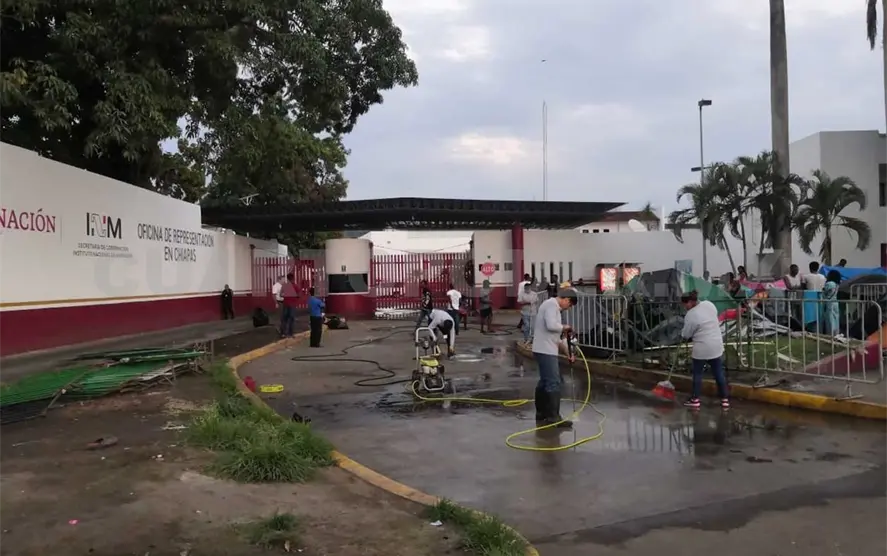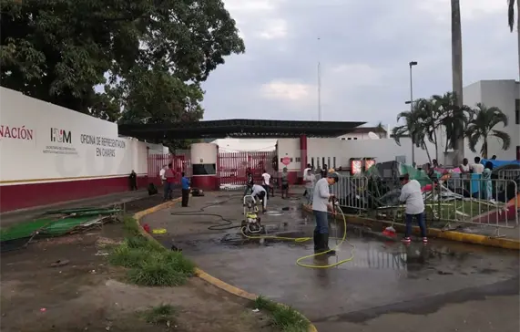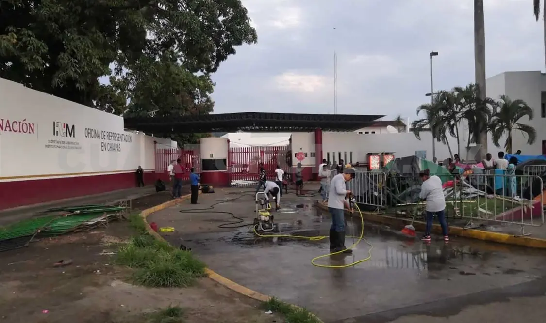 Desde hace cinco meses se instaló un campamento en la explanada externa de las oficinas migratorias que cubría uno de los dos carriles de acceso, mismo que fue liberado.