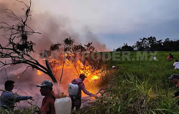 Los fuertes calores y la falta de humedad ocasionan resequedad en pastizales que fácilmente se incendian, como lo ocurrido en las comunidades El Rosario y Zapotal, donde al parecer los quemadores de Pemex generaron un incendio que consumió 45 hectáreas de cultivo de varios propietarios de ambas rancherías.