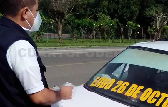 Se trata de un taxi pirata con placas particulares DRF802C del estado de Chiapas, el cual fue interceptado la tarde noche del lunes durante acciones de vigilancia que realiza la SMyT. Un grupo de inspectores se mantenía a la altura del Club Campestre, ubicado sobre la 8.ª avenida Norte, cuando detectó la unidad marca Nissan tipo Tsuru, color blanco con verde, con número económico 04 del sitio “26 de Octubre”.